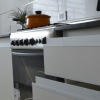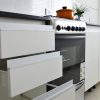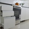 Bajo mesada de tres puertas de 40cm y 3 cajones de 40cm x 57cm de profundidad x 72cm de alto (+ patas regulables) blancos con frentes y cantos de melamina color blanco